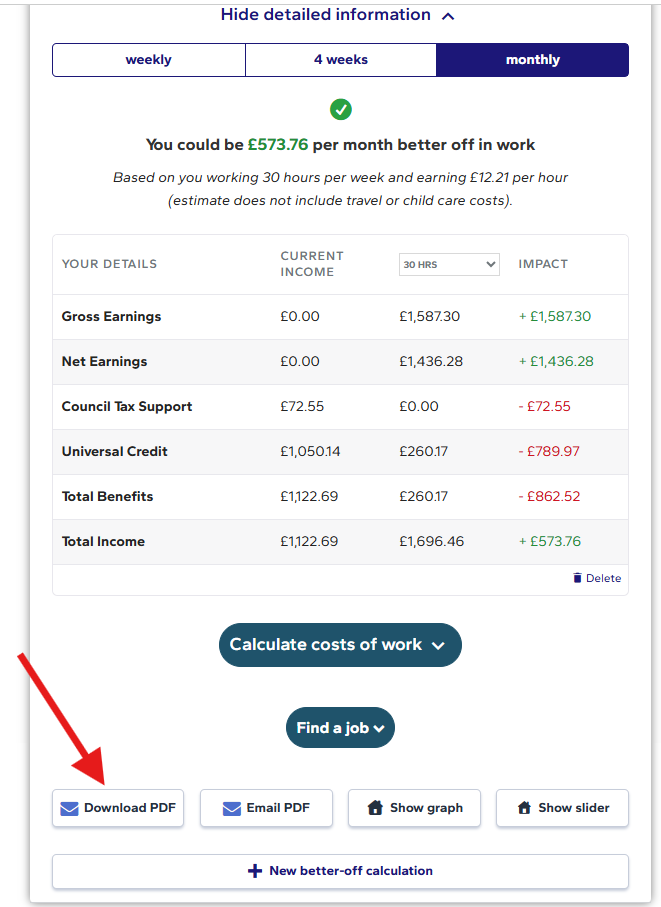 Follow the link to use our ‘Better off calculator’ and follow the link to use our ‘Budgeting tool’